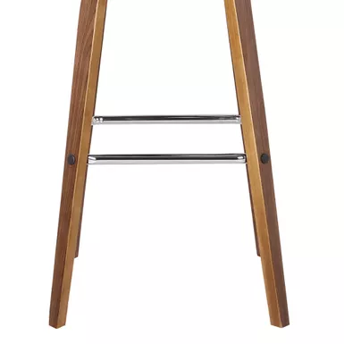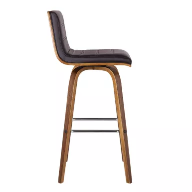 The Vienna 26″ Swivel Brown Faux Leather and Walnut Wood Counter Stool by Armen Living provides both versatile style and comfort with a Mid-Century Modern design that can easily be integrated into your home’s current décor. The 360-degree swivel function provides optimal mobility so you and your guests to stay engaged regardless of your place in the room at parties and gatherings. The Vienna’s frame is constructed of strong wood that is brilliantly accented by the plush high-density foam cushion that’s wrapped in faux leather upholstery. A square metal footrest is added for a chic and stylish aesthetic without comprising practicality and functionality of this item. The soft faux leather upholstery makes clean up a breeze, making this the perfect bar stool for any entertaining home! With multiple bar seat height options and the armless design, you can easily pull the Vienna up to your kitchen island, peninsula counter, or home bar. The high seat back ergonomic properties to keep your back healthy and properly aligned. The Vienna is an ideal addition to any home or apartment and its quality materials ensure a comfortable seat for many years to come.