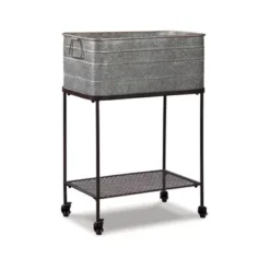 - Made of metal with galvanized gray and black finishes