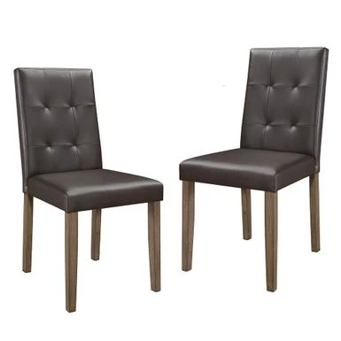 Update your dining room with these simple, yet sleek contemporary side chairs. The side chairs are upholstered in Walnut Brown faux leather and are easy to clean with a wet rag. It’s as comfortable as it is stylish. What’s included: 2-chairsÂ