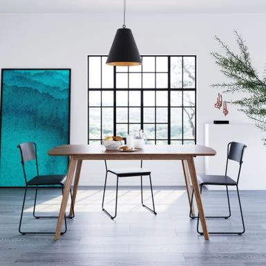 Introduce a touch of mid-century charm to your kitchen or dining space with the Wesley Mid-Century Modern Rectangular Dining Table. Crafted with a top-quality MDF wooden veneer finish and sturdy tapered wooden legs, this table boasts both style and durability. Perfectly versatile, it comfortably seats 4-6 guests and easily transforms your dining room or kitchen with its modern sophistication.