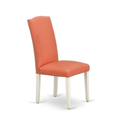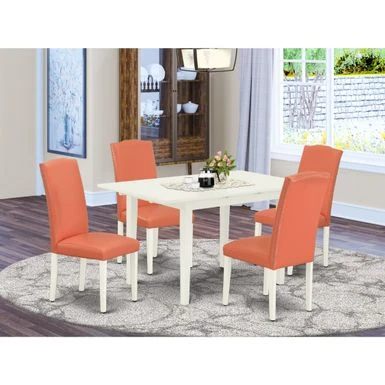 5-Pc Dining Set – 4 Nail Head Parson Chairs with Pond Pu Leather Upholstered Seat and Butterfly Leaf Rectangular Dinette Table – Linen White Finish
