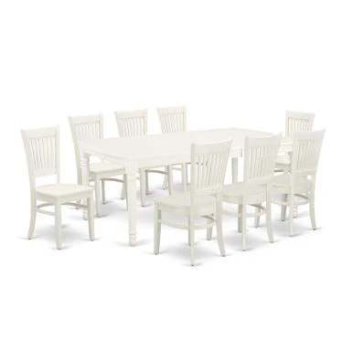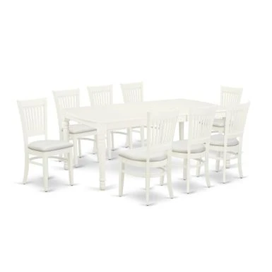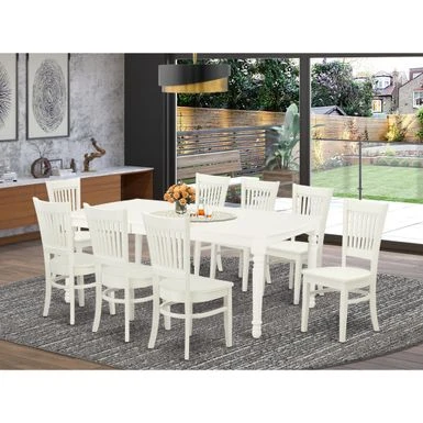 9-Piece wooden dining table set – 8 kitchen chairs with Slatted Back and a Solid wood Seat and a Butterfly Leaf wood dining table with Rectangular Top and 4 Legs – Linen White Finish
