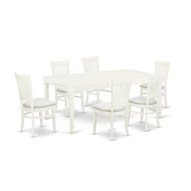 7-Piece wood dinette set-6kitchen chair with Slatted Back and a Real wood Seat-A Butterfly Leaf kitchen dining table with Rectangular Top and 4 Legs- Linen White Finish