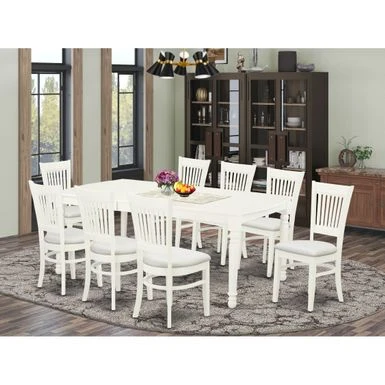 9-Pc modern dining table set-8 dining room chairs with Slatted Back and Linen fabric seat-A Butterfly Leaf dinner table with Rectangular Top and 4 Legs- Linen White Finish