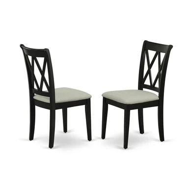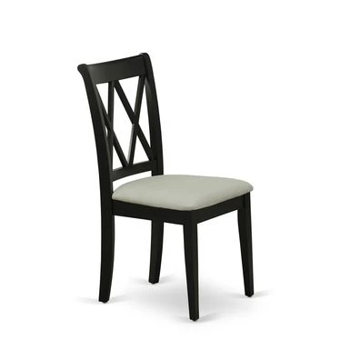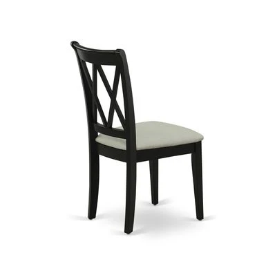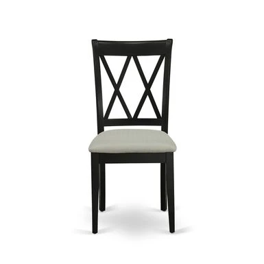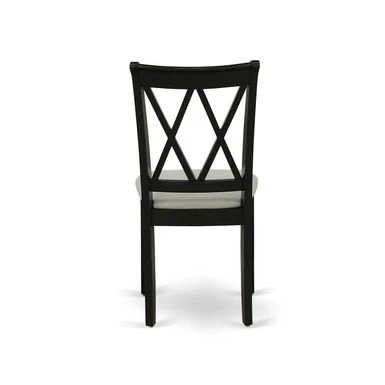5-Pc Wood Dinette Set – 4 Dining Room Chair with Double X-Back and a Linen Fabric Seat and Butterfly Leaf Wood Table – Black Finish