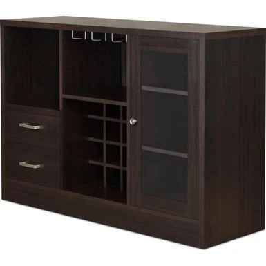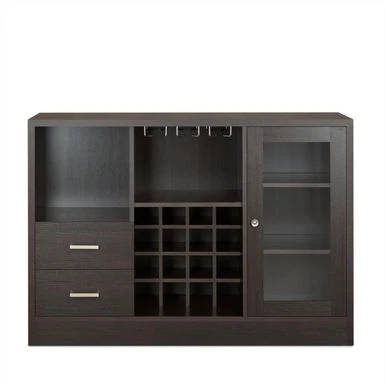 This server with its minimalistic design would bring contemporary sophisticated touch to your dining room. It has espresso brown finished wooden constructed structure. It provides ample storage space as it incorporates two drawers, open side compartment and one glass front side door storage cabinet with two shelves inside. It also features top open compartment with stemware rack with wine bottle rack at the bottom for displaying your wine collection. It is a perfect furniture addition to your dining area or bar area.