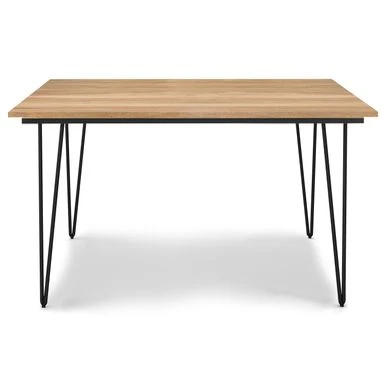 Upgrade your dining area with the Moreno Industrial Mango Wood Dining Table. This contemporary and industrial-style table offers a stylish solution for your dining needs. Its large size comfortably accommodates multiple guests, making every meal a relaxing and enjoyable experience. The table is handcrafted using the finest quality solid Mango Hardwood and Metal, and is hand-finished with a natural finish and protective NC lacquer to accentuate the unique grain of each piece. The industrial design features a natural finished top, black metal frame, and black hairpin legs, all of which complement the on-trend home.
